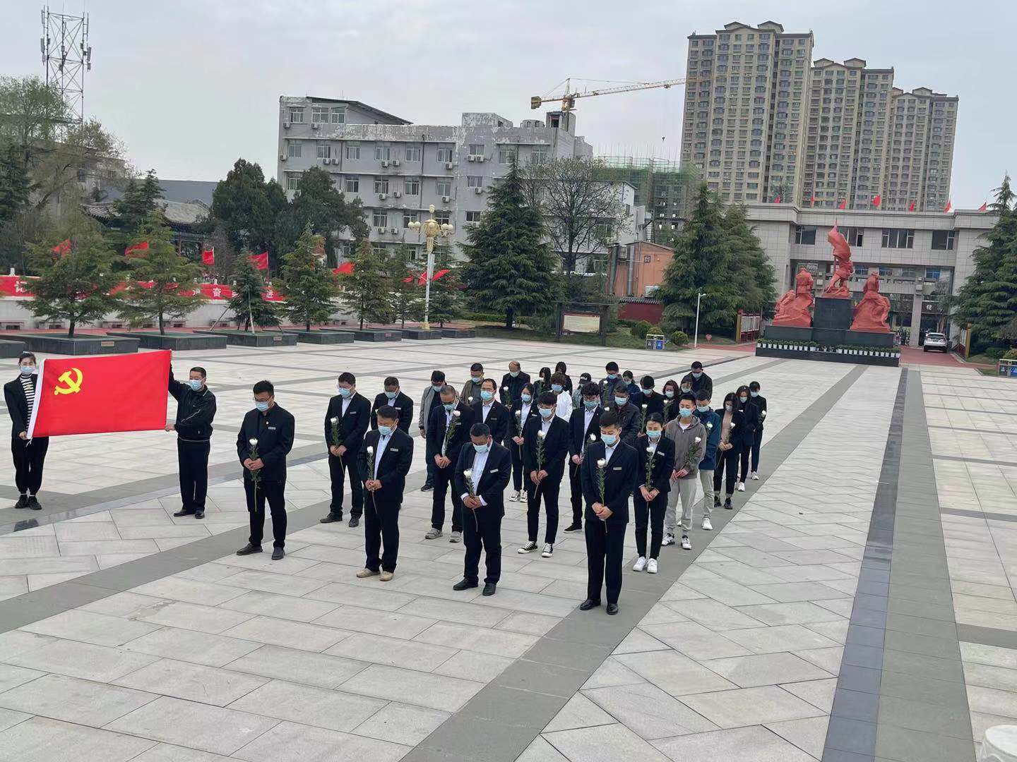 在莊嚴(yán)的烈士陵園紀(jì)念碑前,懷著對(duì)革命先烈的崇敬心情,全體職工向烈士默哀,依次繞行并瞻仰革命烈士紀(jì)念碑,將手中的鮮花擺放在烈士紀(jì)念碑前。隨后,全體人員進(jìn)入英靈堂傾聽(tīng)講解員深情講述革命先烈在激情燃燒的歲月,為民族解放事業(yè)拋頭顱、灑熱血的英勇戰(zhàn)斗故事。